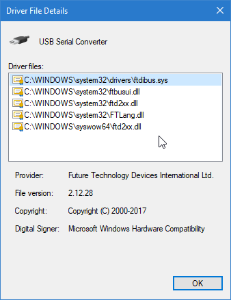To further verify correct driver installation, click on „Driver“ tab and then click button „Driver details“: