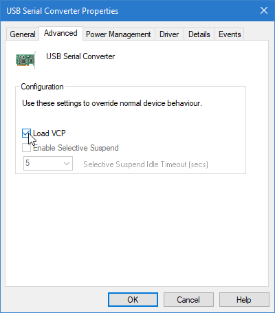 Please note: the „Load VCP“ feature is not a system-wide setting. It needs to be enabled for each CANUSB unit connected to the system individually.
